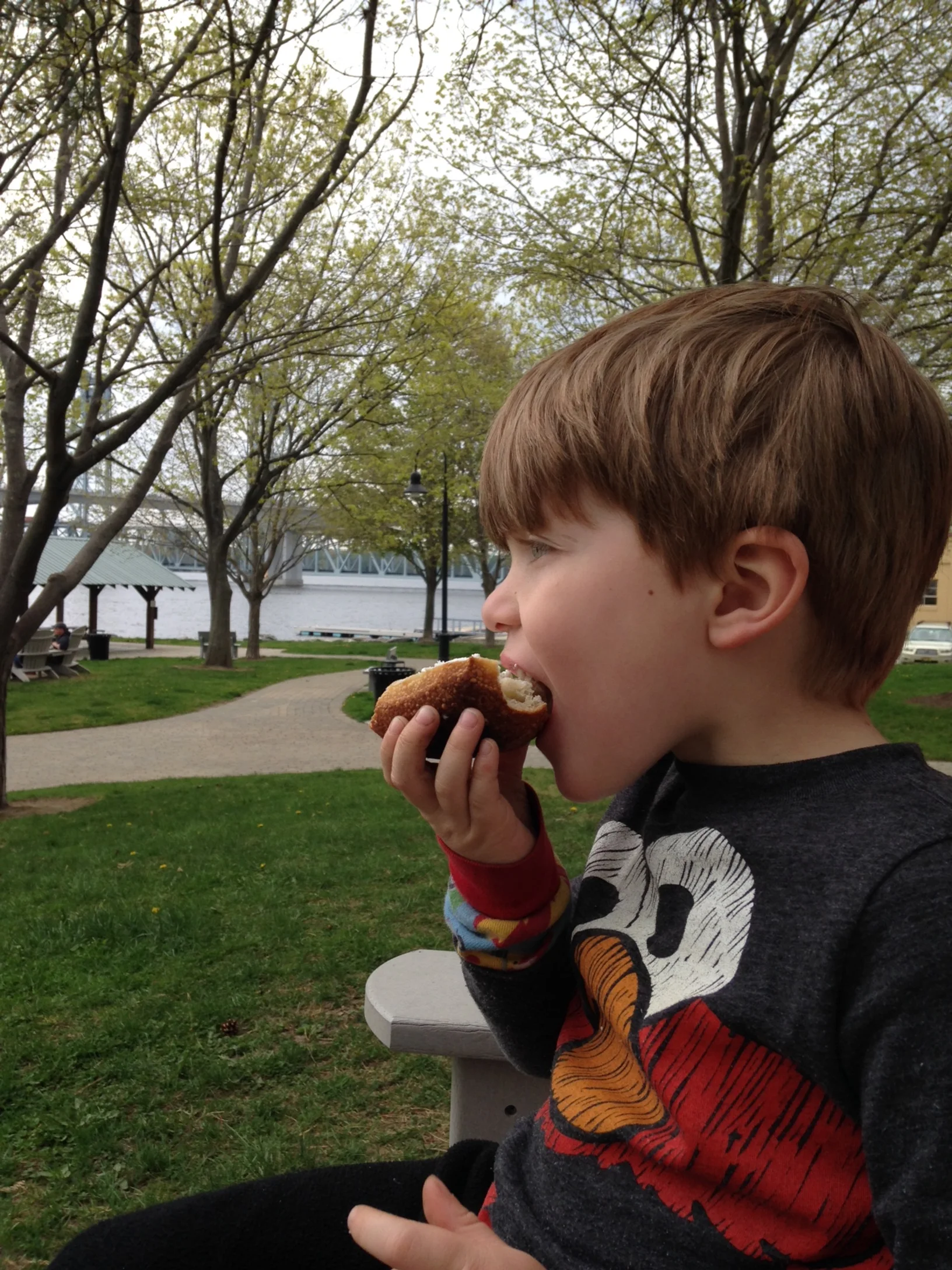 Our kiddo thinks farmer's market breakfasts are the best. Featured here: Rosemary Sourdough Roll from Borealis Breads; garlic-herb chevre from Appleton Creamery.